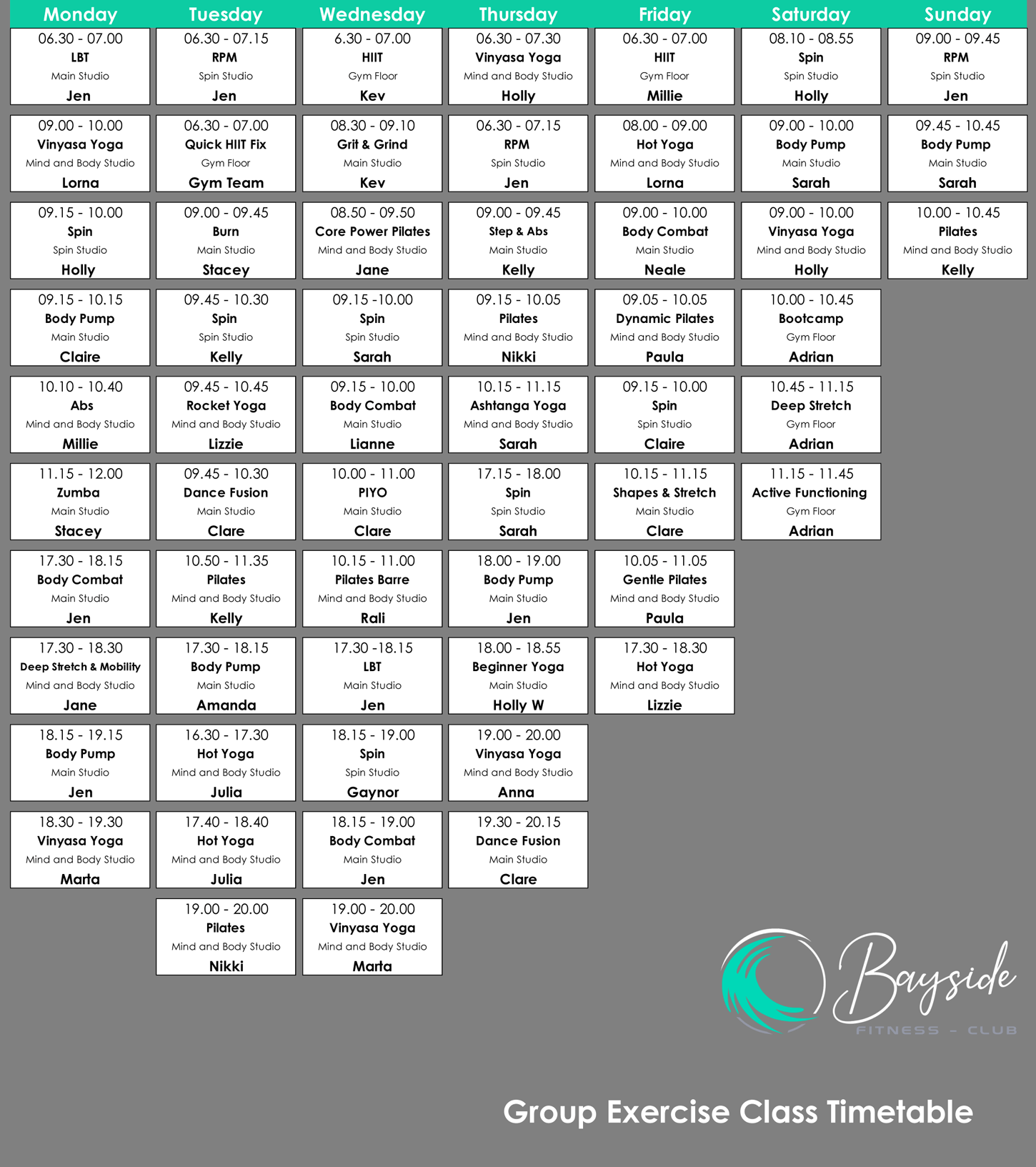 With over 50 exercise classes per week in both the studios and on the gym floor, you can be guaranteed a fun, yet challenging workout with our experienced group exercise instructors. Bayside Fitness Club is home to a state of the art spin studio, a spacious main studio equipped for a variety of strength and HIIT training not to mention Les Mills Pump, Combat and Body Attack. Our fantastic Mind and Body studio hosts an array of different Yoga styles and Pilates classes as well as Hot Yoga. All classes are including in your membership.
