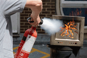 - Practical use of water extinguisher, a fire blanket and a Co2 extinguisher