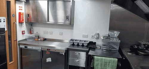 Offering a modern, fully equipped kitchen.  The perfect facility for cooking, teaching, and creating.